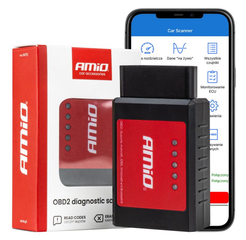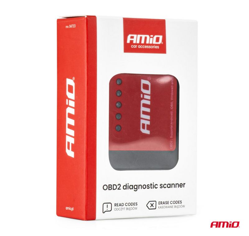 Moderné diagnostické zariadenie AMIO OBD2 BT XL umožňuje diagnostiku vozidiel cez smartfón, tablet alebo počítač. Určené pre vozidlá podporujúce štandard OBD2. Zariadenie podporuje širokú škálu komunikačných protokolov, a preto je nenahraditeľné v autoservisoch, mobilných servisných jednotkách aj u profesionálnych používateľov automobilovej diagnostiky.