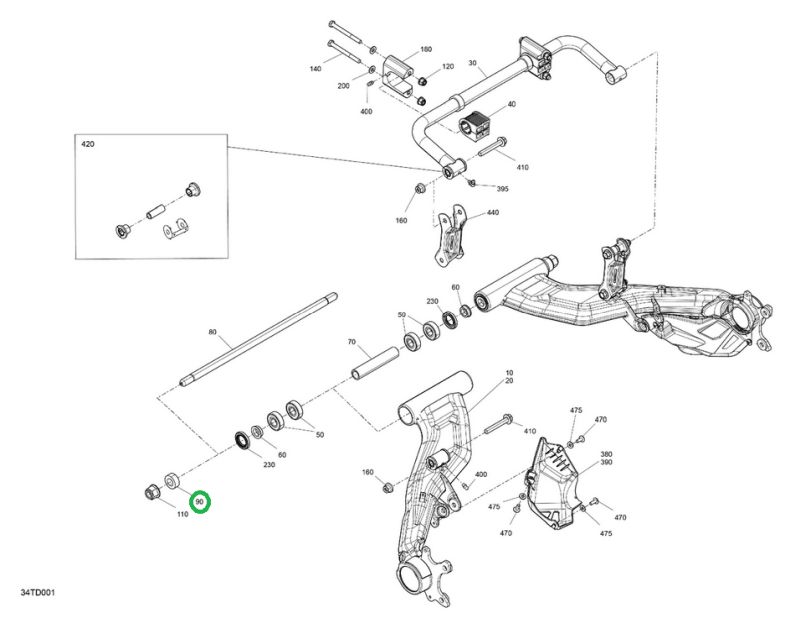 Uloženie osky zadných ramien CAN-AM Outlander/ Renegade 450/ 570/ 650/ 850, M17, 250200112